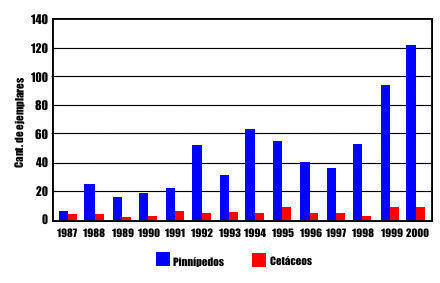 (Especies Atendidas entre 1987-2000). Fundación Mundo Marino